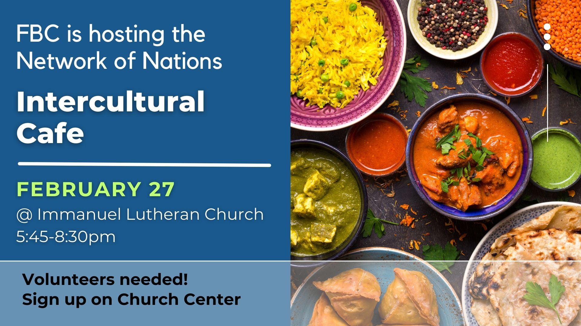 We have the privilege of serving at the Network of Nations Intercultural Café on Friday, February 27. This is an opportunity to reach out to the International students at NIU, and to reach the nations that are here in our backyard. The café is held at Immanuel Lutheran Church in DeKalb. English Conversation groups begin at 5:45pm. Feel free to bring your kids as the students enjoy talking to both adults and children.